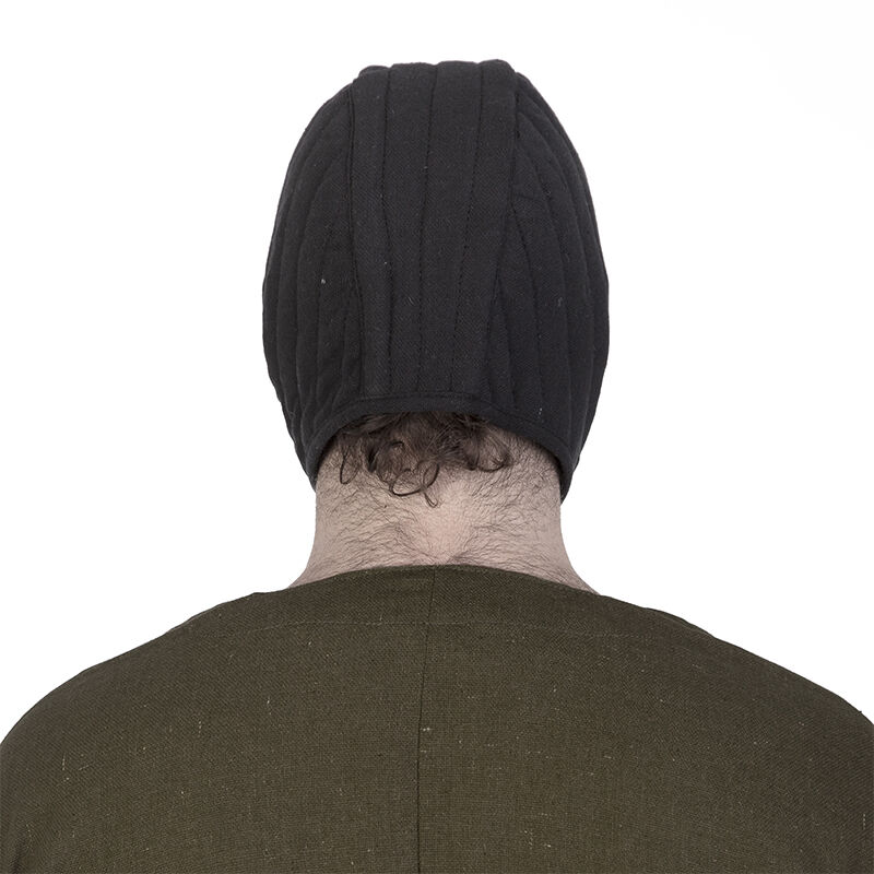 EN: Soft medieval coif worn under a helmet and/or chainmail coif, providing protection in medieval reenactments or LARP.