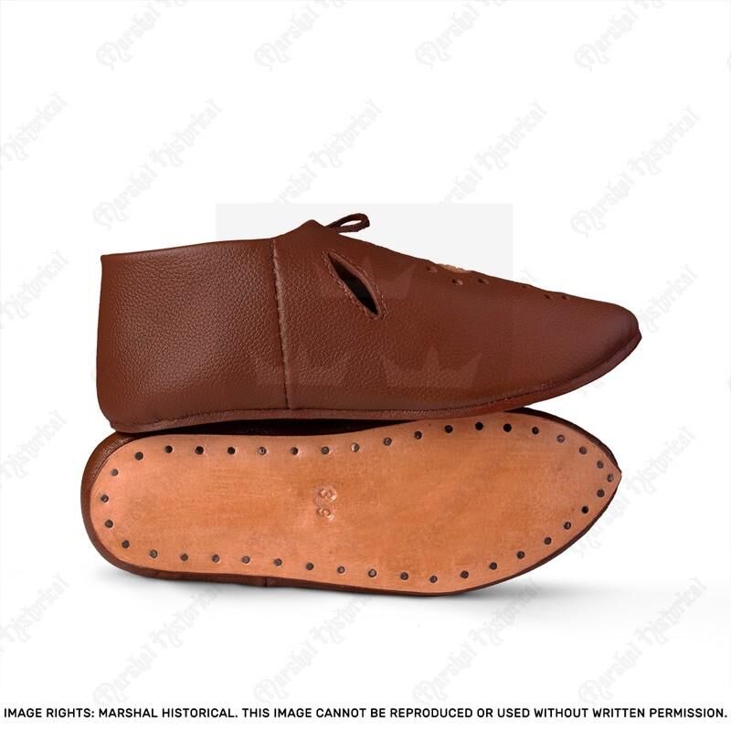 ES: Calzado medieval del siglo XIII hecho de cuero natural. Estos zapatos son ideales para LARP, recreación histórica o rol en vivo.
