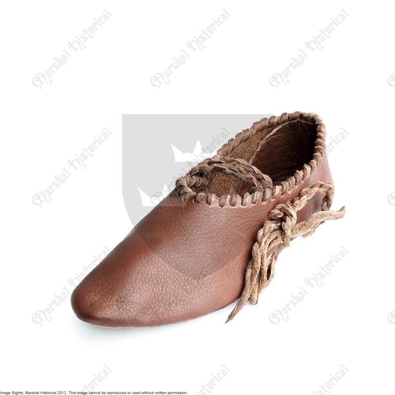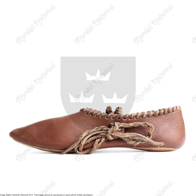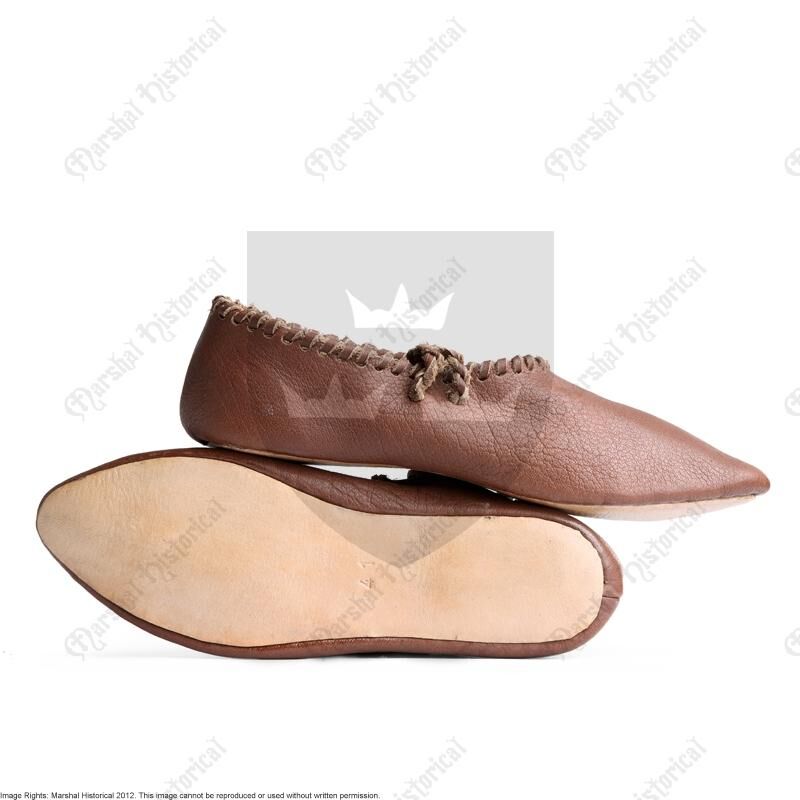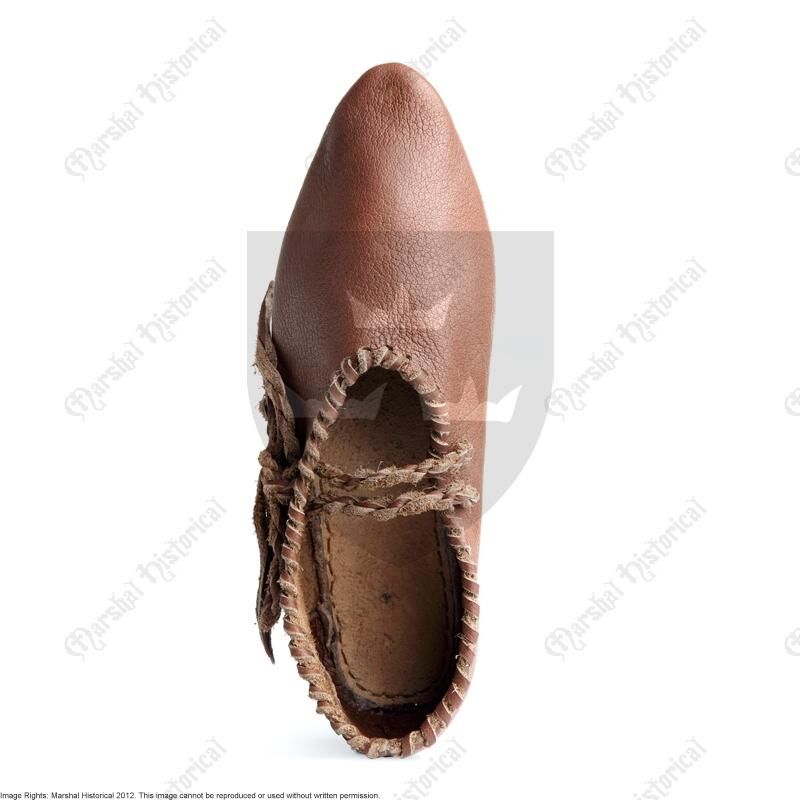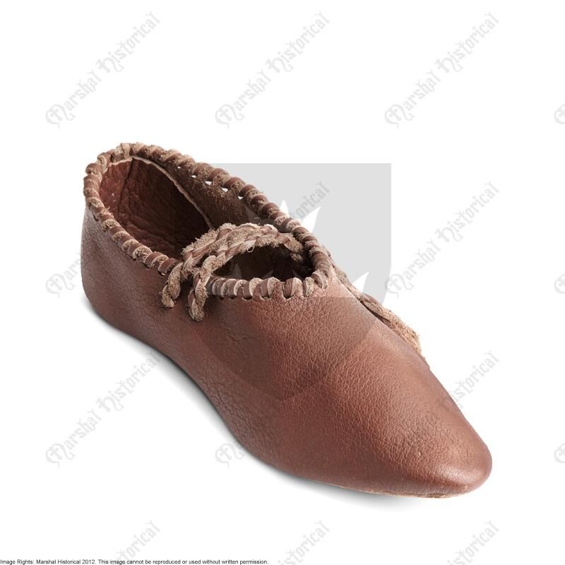 ES: Zapato ligero, flexible y cómodo, que carece de suela rígida del siglo XIII. Complemento perfecto para tus recreaciones medievales o eventos LARP.