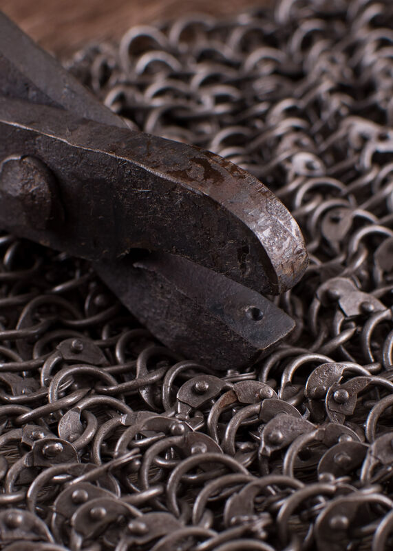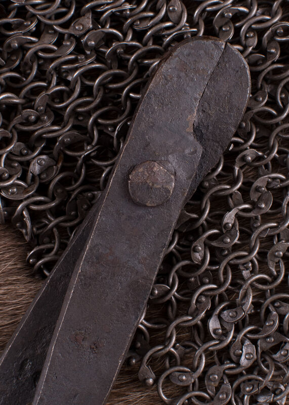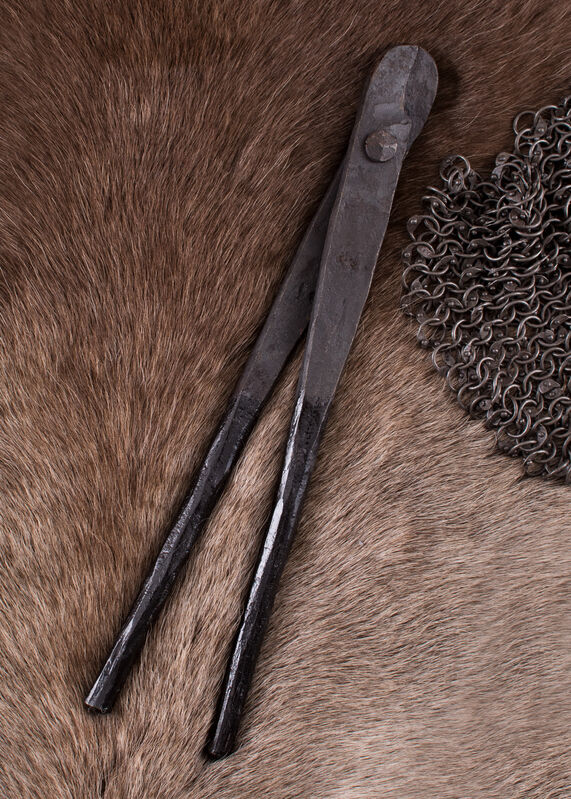 These solid hand-forged pliers are essential tools for the repair and manufacture of riveted chainmail. Made to rivet 6mm round rivet rings or RM Roman Mail.